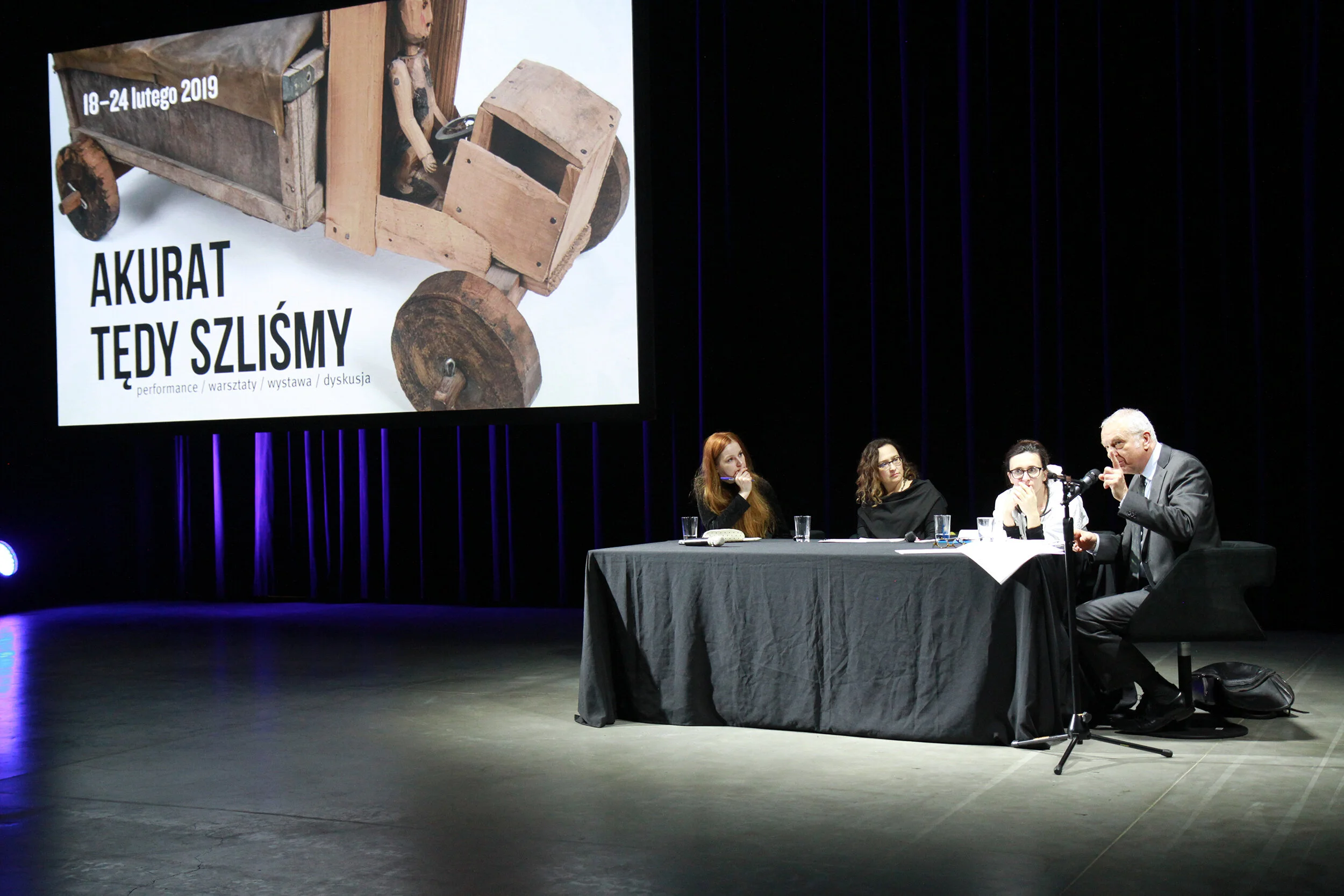 The workshop and performance action was followed by a public panel chaired by Michal Kobialka The discussion included reflections on the function of the object, its objectness, and the staging of difficult pasts across theatrical and museal frames. Panellists included curators Erica Lehrer and Roma Sendyka, theatre makers Ludmiła Ryba and Wojtek Ziemilski, members of the Kolektyw Kuratorski and theatre scholar Anna Róża Burzyńska.