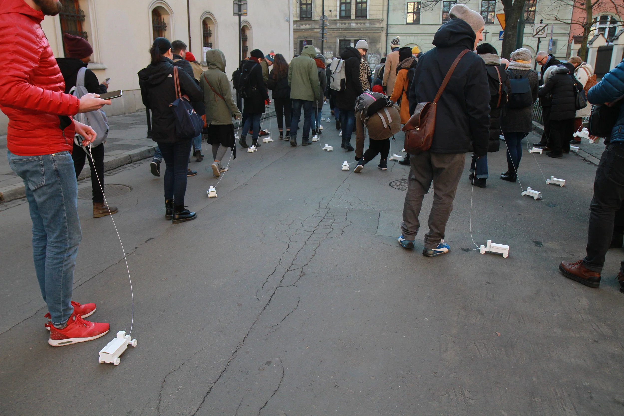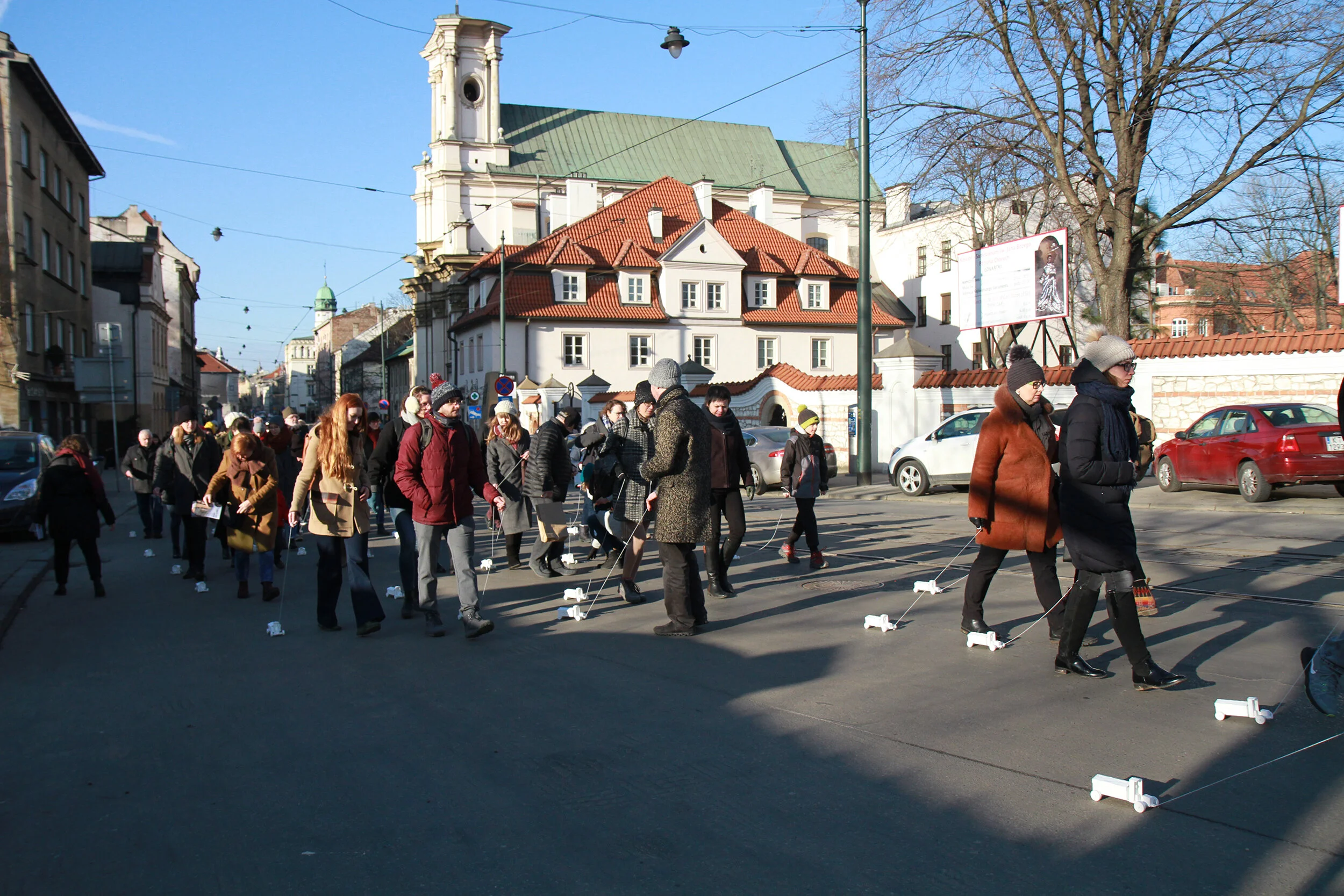 The performative action, directed by Wojtek Ziemilski, is a procession from the MEK headquarters in Krakow (46 Krakowska St.) to the Cricoteka. We invite you to participate in the action. Route: MEK (plac Wolnica 1) – Piłsudski Bridge – Cricoteka.