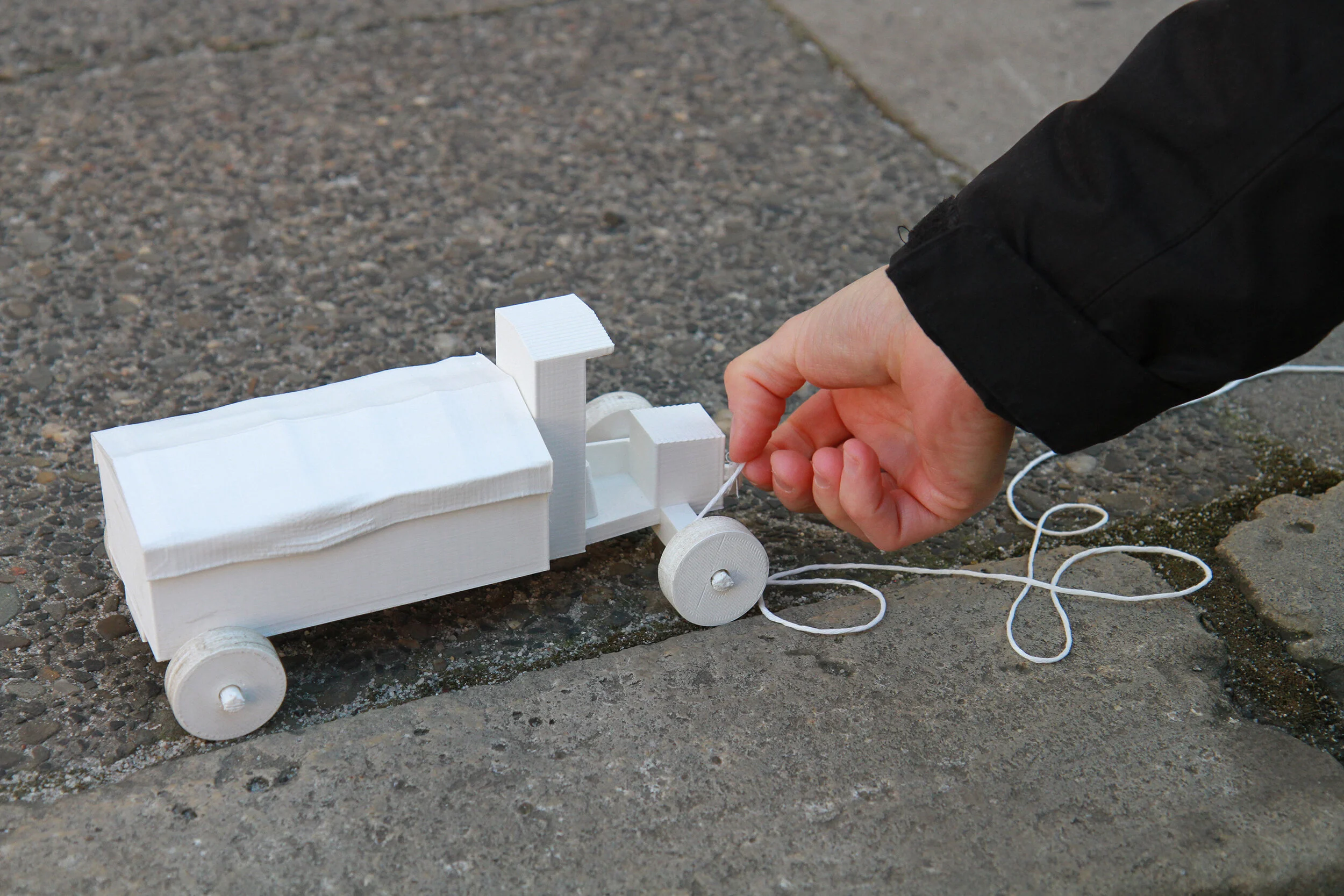 Ciągnijmy go więc za sobą. Absurdalne zabawki beznamiętnie symbolizujące cierpienie.