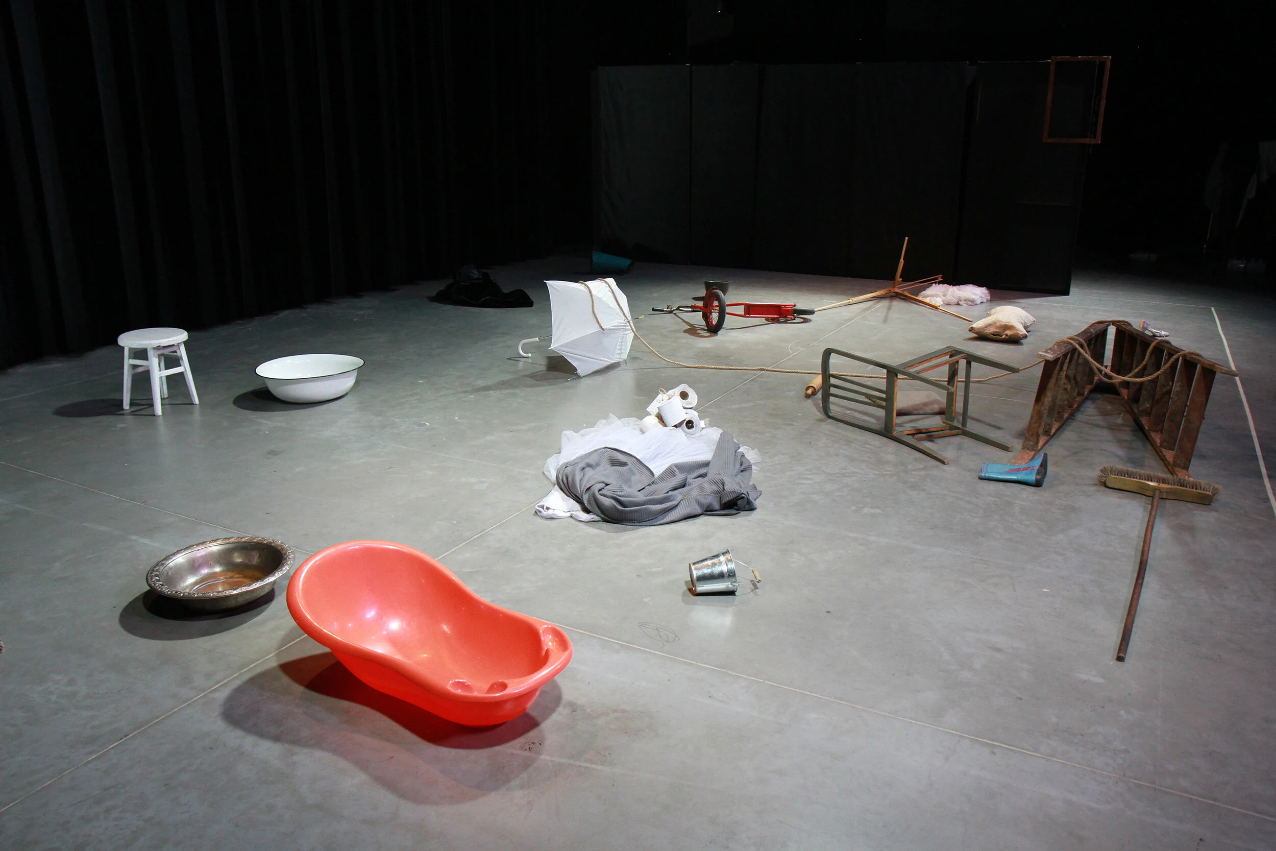 Ludmiła Ryba, actress in the Cricot 2 Theatre (1979-92), led a week-long intensive workshop on Tadeusz Kantor’s approach to objects in his theatre practice. Working with a group of curators (Kolektyw Kuratorski), who were at the same time preparing a performative intervention in the gallery space of Cricoteka housing Kantor’s objects and machines, Ryba introduced them to Kantor’s concept of the actor, burdened not with a role, but with objects. Using Rachela Auerbach’s essay ‘Lament of the Dead Things’, written in the Warsaw Ghetto in 1944, Ryba explored Kantor’s vision of the object at “the threshold between eternity and the dump”, rather than defined by textual or historical narrative. Through a series of exercises and etudes, the curators discovered the specific rules that governed Kantor’s practice and the dynamics of creating spatial tensions between objects. The primary focus of the workshop was spatial and visual thinking. The curators were invited to test the materiality of objects, their ‘objectness’, and to allow narratives to emerge from the objects themselves rather than from their conventional use or being imposed upon them by traditional, illustrative representational practices.